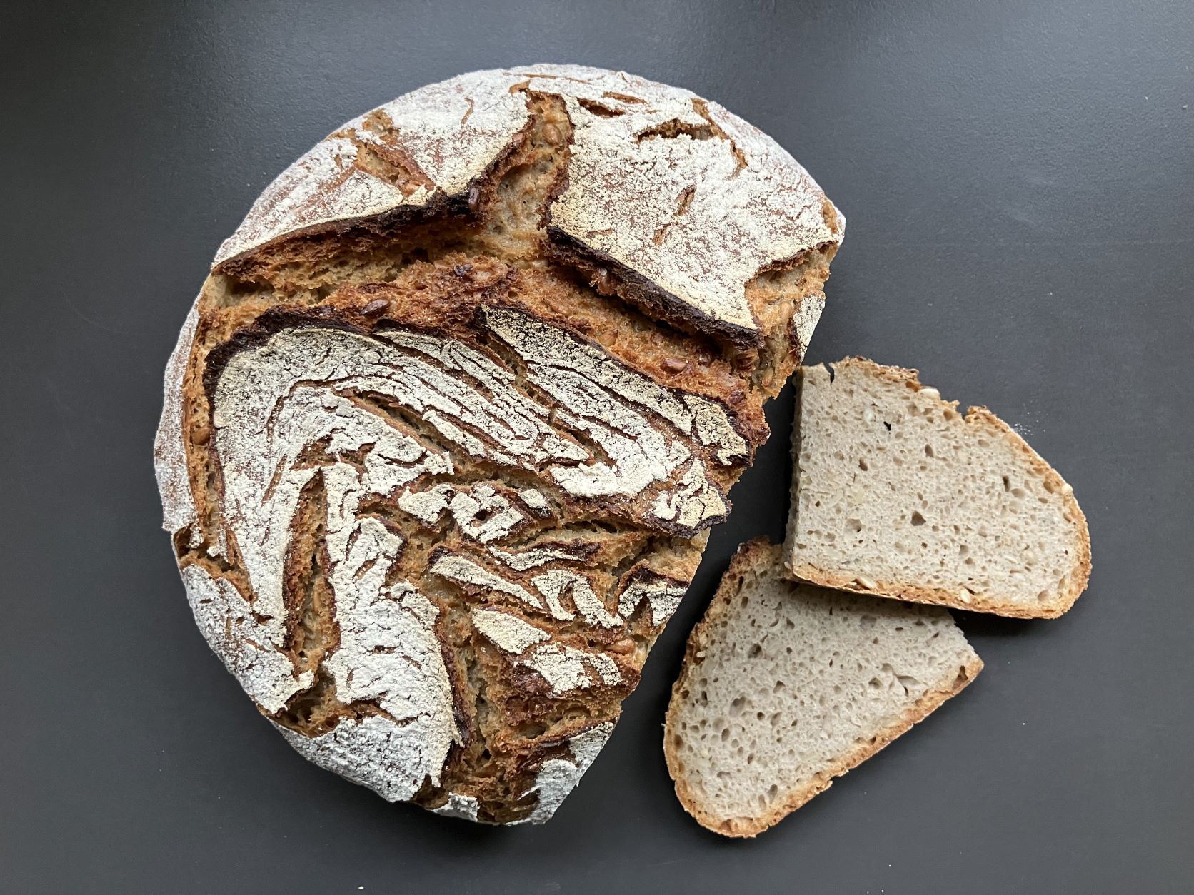 Reines Sauerteig-Roggenmischbrot mit Sonnenblumenkernen.