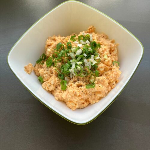 • Zwiebeln klein schneiden und mit den Gewürzen unter die Masse mischen.