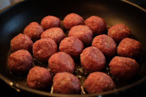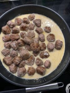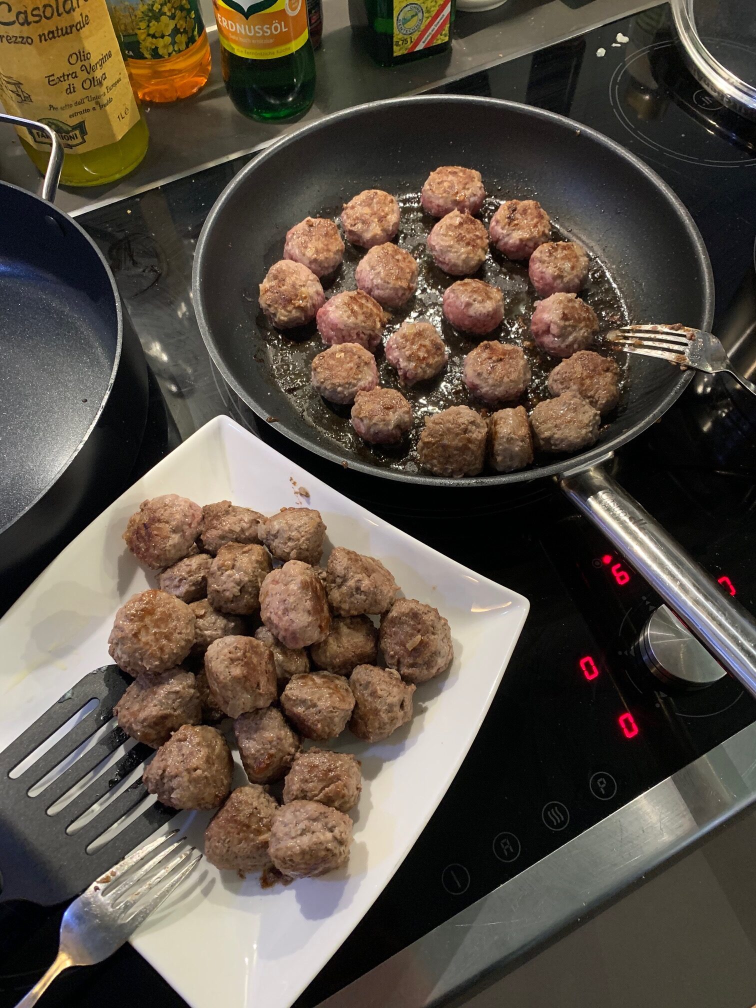 • Fleischbälle wieder hinzugeben und mit einem Deckel die Pfanne schließen