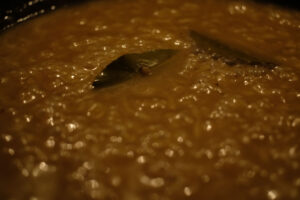 • Diese Soße dann ein paar Minuten köcheln lassen und ggf. Pfeffer, Salz und Piment hinzugeben (probieren)