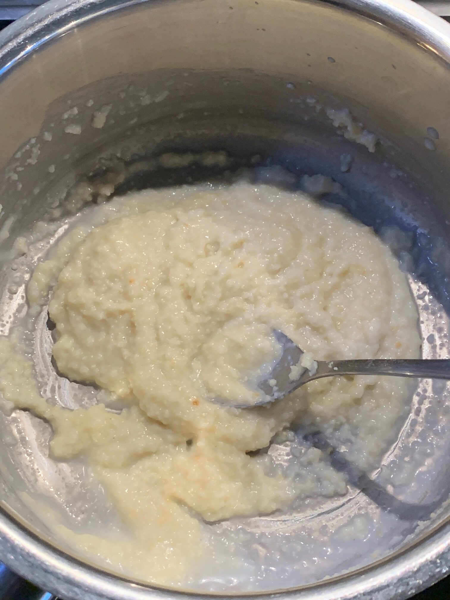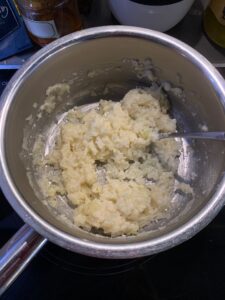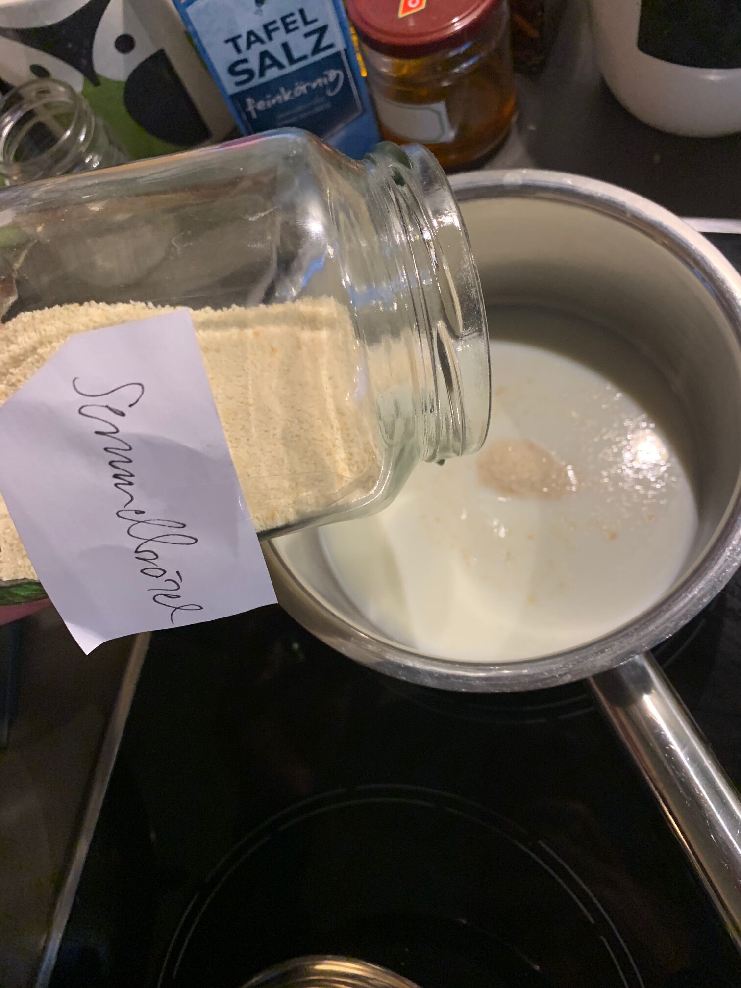 (soll nicht in Milch schwimmen soll aber auch nicht zu trocken sein.. lieber mit weniger Milch anfangen und nach Bedarf nachgießen)