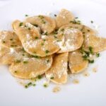 - Mit Parmesan, brauner Butter und dem Schnittlauch anrichten