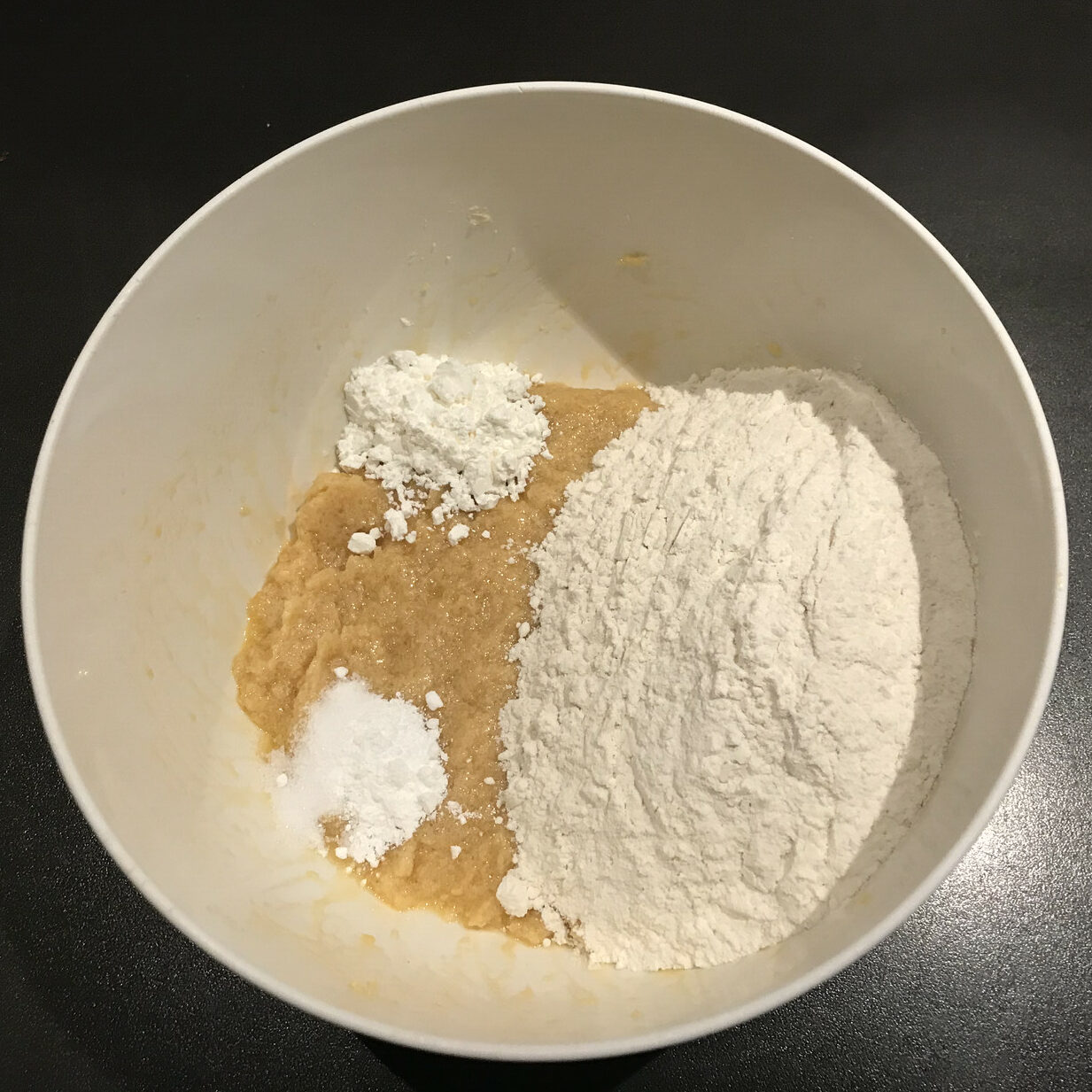 - Mehl, Stärke, Backpulver und Salz vermischen