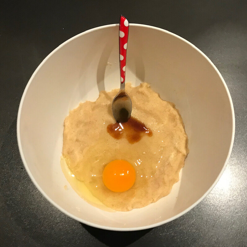- Anschließend Ei und Vanille zugeben und verrühren.
