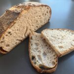 - 200 gr vom Grundsauer in dem Wasser auflösen und die beiden Mehlsorten klumpenfrei zu einem homogenen Teig verkneten. 45 Minuten stehen lassen (Autolyse)